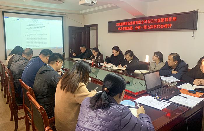 2月22日、24日,五〇三直管項(xiàng)目部分別組織安寧財(cái)大住宅小區(qū)項(xiàng)目(三標(biāo)段)、晉寧安企居住區(qū)建設(shè)項(xiàng)目全體管理人員集中學(xué)習(xí)宣貫集團(tuán)、公司一屆七次職代會(huì)精神,將兩級(jí)職代會(huì)精神傳達(dá)到項(xiàng)目一線。