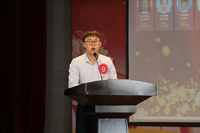 公開競選中,選手們要在規(guī)定的4分鐘內(nèi)展示自己,贏得投票。選手們聲情并茂,用一句句樸實的話語展現(xiàn)了他們吃苦耐勞、堅韌不拔的精神面貌,激勵了在場的每一位青年職工樹立目標(biāo)、懷抱夢想、勇于拼搏。9號選手楊揚講述了他進(jìn)駐宣威得祿鄉(xiāng)兩年的扶貧故事,一張張入戶走訪、幫老鄉(xiāng)賣農(nóng)產(chǎn)品的照片深深打動了在場觀眾。
