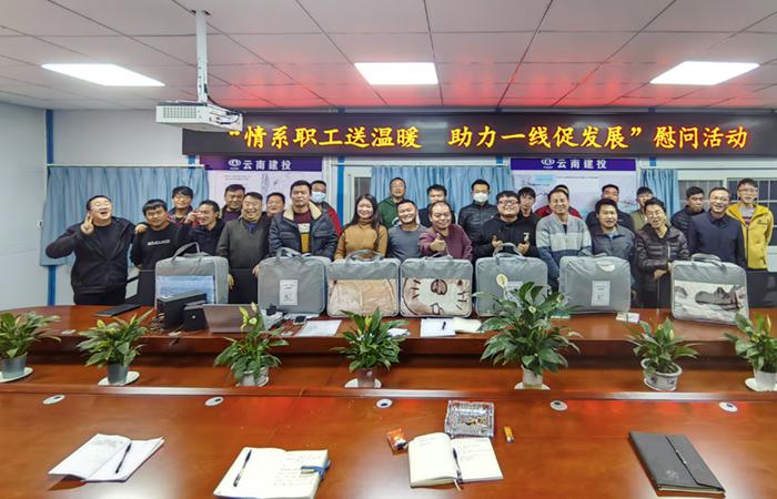 1月4日晚,五〇二直管部工會到到開遠(yuǎn)市小龍?zhí)赌隙礈细囊乒こ涕_展“情系職工送溫暖 助力一線促發(fā)展”慰問活動,深入基層、深入項(xiàng)目一線,為職工送去直管部的溫暖與關(guān)懷。慰問時,直管部書記將毛毯等慰問品一一送到同志們的手里,并叮囑大家,一是春節(jié)臨近,時至寒冬,大家在工作生活中要注意防寒保暖,‘身體是革命的本錢’,你們的健康是我們最大的欣慰。二是年關(guān)將至,大家要守好2022年的最后一關(guān),合理安排年前的施工任務(wù)…