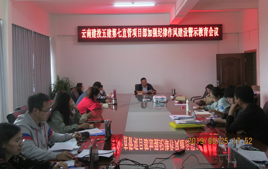 為加強(qiáng)國慶節(jié)期間紀(jì)律作風(fēng)建設(shè),9月25日,第七直管項目部召開紀(jì)律作風(fēng)建設(shè)警示教育專題會。 會上,黨支部紀(jì)檢委員帶領(lǐng)大家學(xué)習(xí)了集團(tuán)紀(jì)委《關(guān)于2019年中秋國慶期間加強(qiáng)紀(jì)律作風(fēng)建設(shè)的通知》等廉政建設(shè)文件。傳達(dá)通報了省紀(jì)委、監(jiān)察委近期下發(fā)的幾個違反中央八項規(guī)定精神問題的通報文件。對節(jié)日期間加強(qiáng)黨風(fēng)廉政建設(shè)作了安排和要求。,組織觀看了《國資“蛀蟲”覆滅記》――…