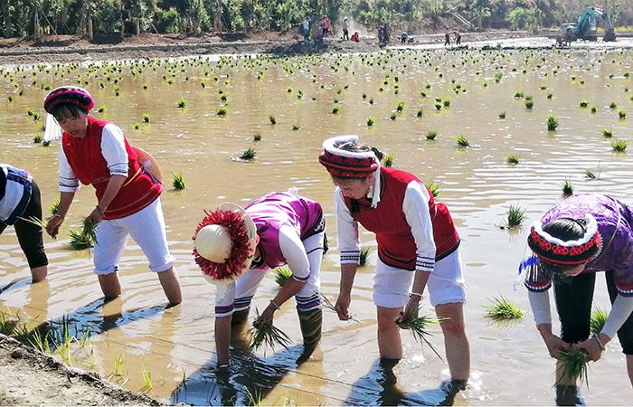 大理三線劃定項(xiàng)目栽插水稻秧苗