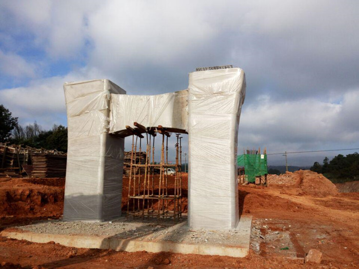 正在養(yǎng)護的橋墩墩柱