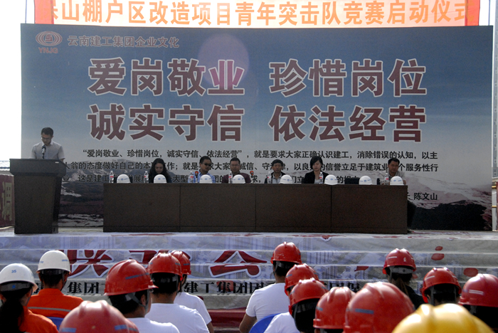 活動(dòng)中,周炳軍作了動(dòng)員講話,并從找準(zhǔn)結(jié)合點(diǎn)、落實(shí)著力點(diǎn)、培育閃光點(diǎn)三個(gè)方面對(duì)青年突擊隊(duì)提出了要求;保山市棚戶區(qū)改造項(xiàng)目指揮部指揮長(zhǎng)施旭升對(duì)競(jìng)賽的相關(guān)工作做了安排;楊瑜宣讀了青年突擊隊(duì)競(jìng)賽方案,競(jìng)賽從五位一體、創(chuàng)新、育人、形象方面開展,既可以更好地促進(jìn)工作任務(wù)的完成,還能打造出一支朝氣蓬勃的青年人才隊(duì)伍。隨后,來自四公司、五公司、七公司、總承包公司、十公司、云海公司的青年突擊隊(duì)隊(duì)長(zhǎng)依次上臺(tái)作了表態(tài)發(fā)言,并由參會(huì)領(lǐng)導(dǎo)向各參賽隊(duì)伍授予“青年突擊隊(duì)”旗幟。隊(duì)員們揮舞起自己的隊(duì)旗,激情的口號(hào)聲在工地響起,啟動(dòng)儀式圓滿結(jié)束。